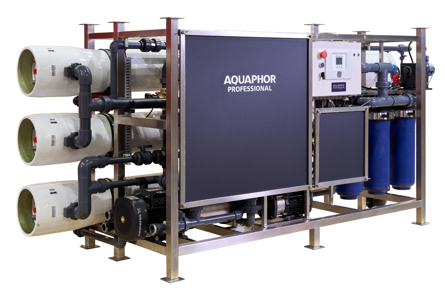 Die AQUAPHOR APRO-3000-D-Black ist eine kompakte, industrielle Umkehrosmoseanlage der Premiumklasse, entwickelt für höchste Ansprüche an Reinwasserqualität, Energieeffizienz und Betriebssicherheit. Mit einer Leistung von bis zu 3.000 Litern pro Stunde bietet sie eine leistungsstarke Lösung für gewerbliche, industrielle und gastronomische Anwendungen, bei denen konstant reines Wasser benötigt wird.